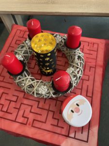 In den Klassenräumen ist es am Morgen nun besonders gemütlich. Da leuchten Lichterketten und Kinderaugen, wenn der Klassenadventskalender oder die Wichtelgeschenke geöffnet werden. Es wird vorgelesen oder wie in der 4a gemeinsam ein Weihnachtsbuch gelesen.