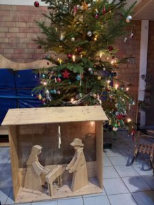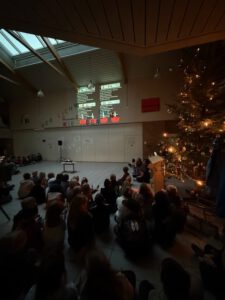 Der große Weihnachtsbaum im Forum steht, auch die Holzkrippe ist aufgebaut und am Montagmorgen hat sich zum ersten Mal in diesem Jahr die ganze Schule getroffen und gemeinsam Weihnachtslieder gesungen.