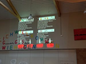 Einmal im Monat geht das bei uns in der Schule so, denn immer am ersten Donnerstag im Monat ist Schulfrühstück.
